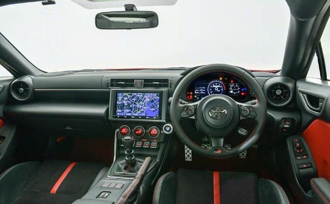 來到車內,新車的內飾也是和新BRZ如出一轍,採用了8英吋中控屏幕,支持Apple CarPlay等手機互聯。7英吋全液晶儀錶盤科技感進步明顯,轉速表依然位於中間,車輛G值表放在了左側,油量和水溫則在右側。空調控制旋鈕採用了液晶數字顯示,整體多了些設計感和科技感。