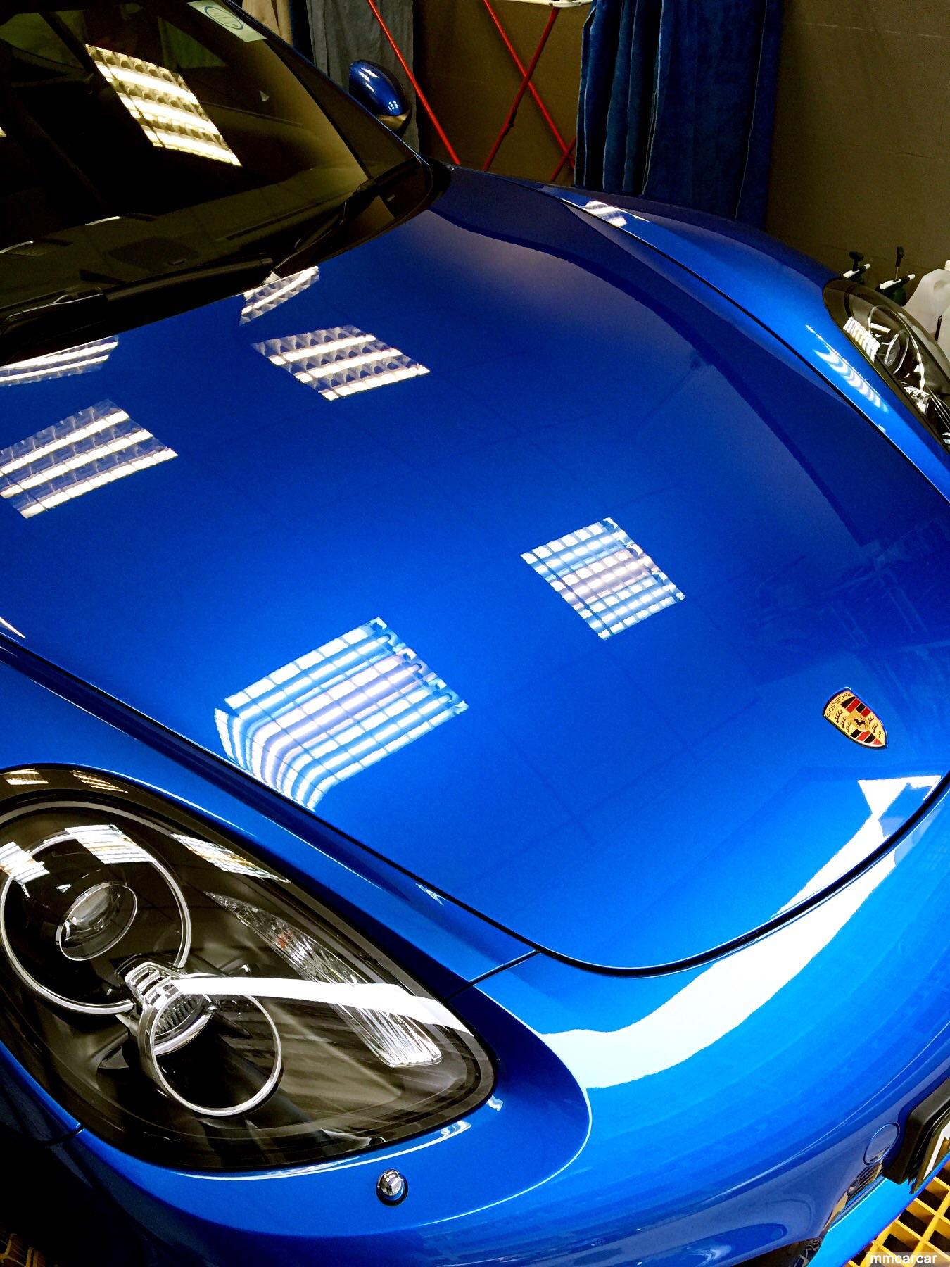 CaymanS 銀底藍,又係藍色近期做左好幾架藍色跑車,睇得太多黑白銀灰,深藍或者銀底藍都好sharp,鍍膜完成後車身睇落去有一層0.4um薄膜層,整個車體有包漿感,簡單D講就D係女人成日話塊面水水的感覺。